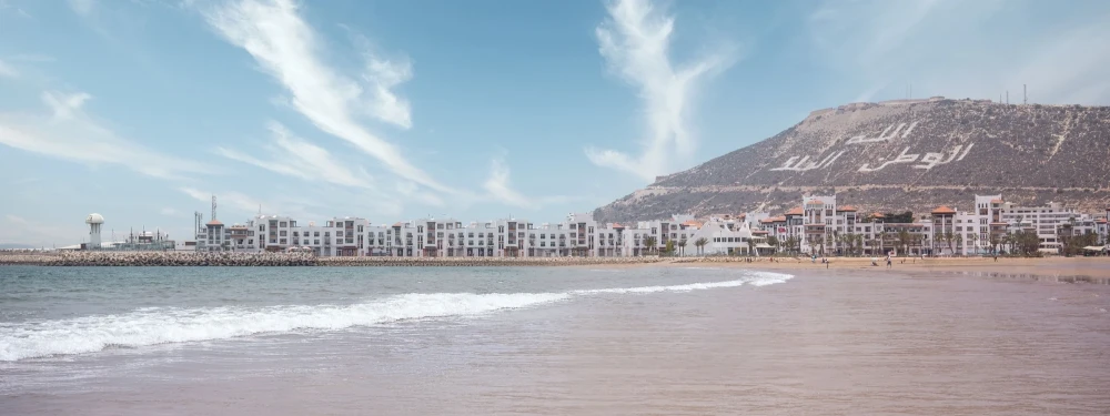 Avec plus de 300 jours de soleil par an, Agadir Souss Massa est une destination idéale pour profiter de la chaleur et de la lumière tout au long de l'année. Que ce soit pour se détendre sur la plage, explorer les montagnes ou s'aventurer dans le désert, le soleil sera votre compagnon de voyage.